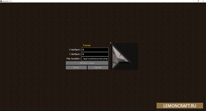 Мод Cursor предназначен для изменения стандартного вида курсора. Для добавления нового курсора нужно по пути assets/minecraft/textures/gui/ скинуть изображение с новым курсором в формате PNG. Найти данное изображение можно в интернете без всяких проблем.